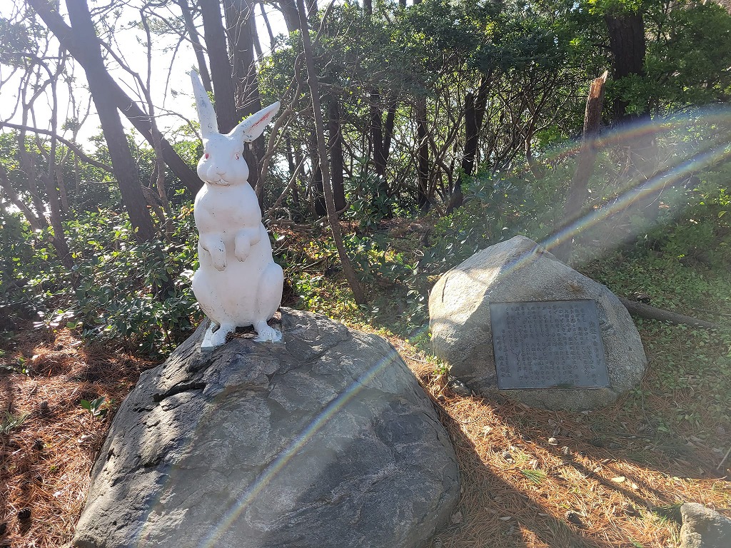 お宮へ続く道の手前、左手に白うさぎの像が見えました。