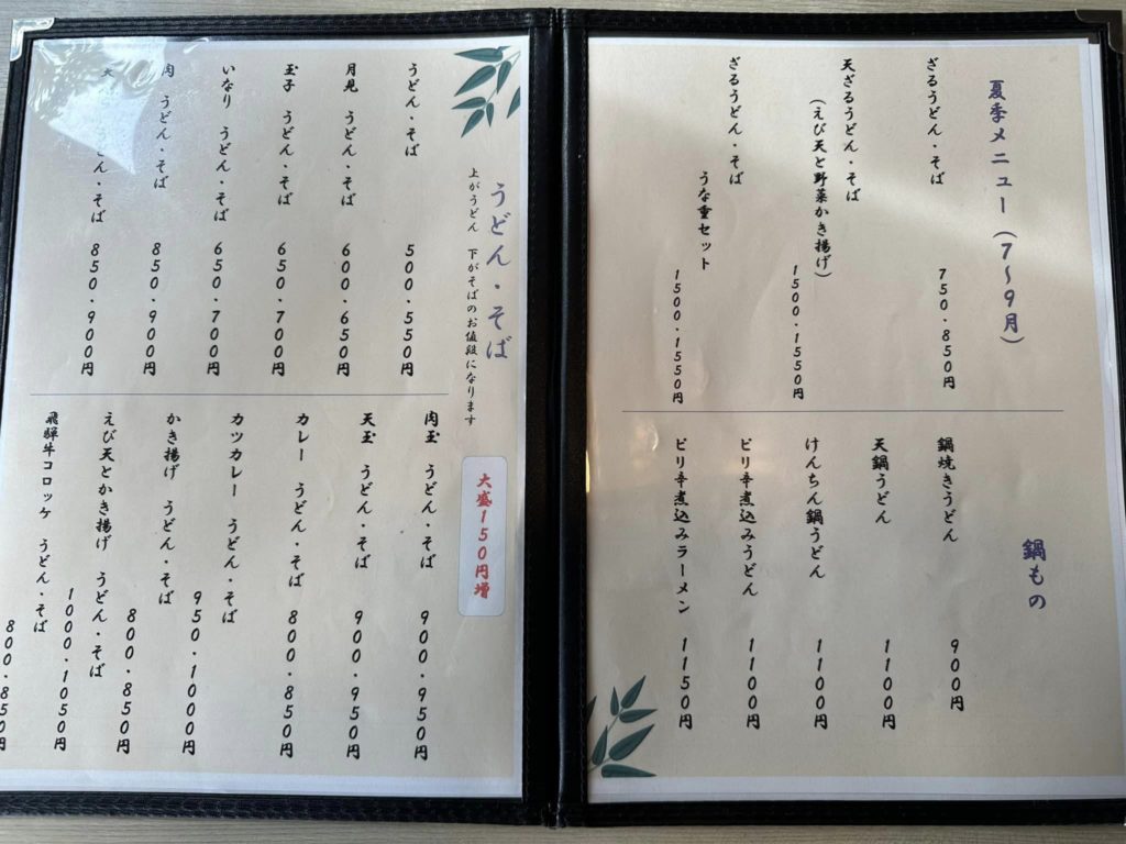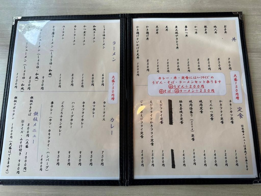 小うどん +200円 小そば・小ラーメン +250円