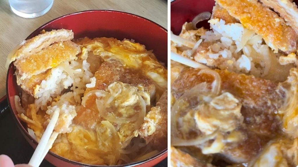 運ばれてきたのは、一見普通のかつ丼ですね。