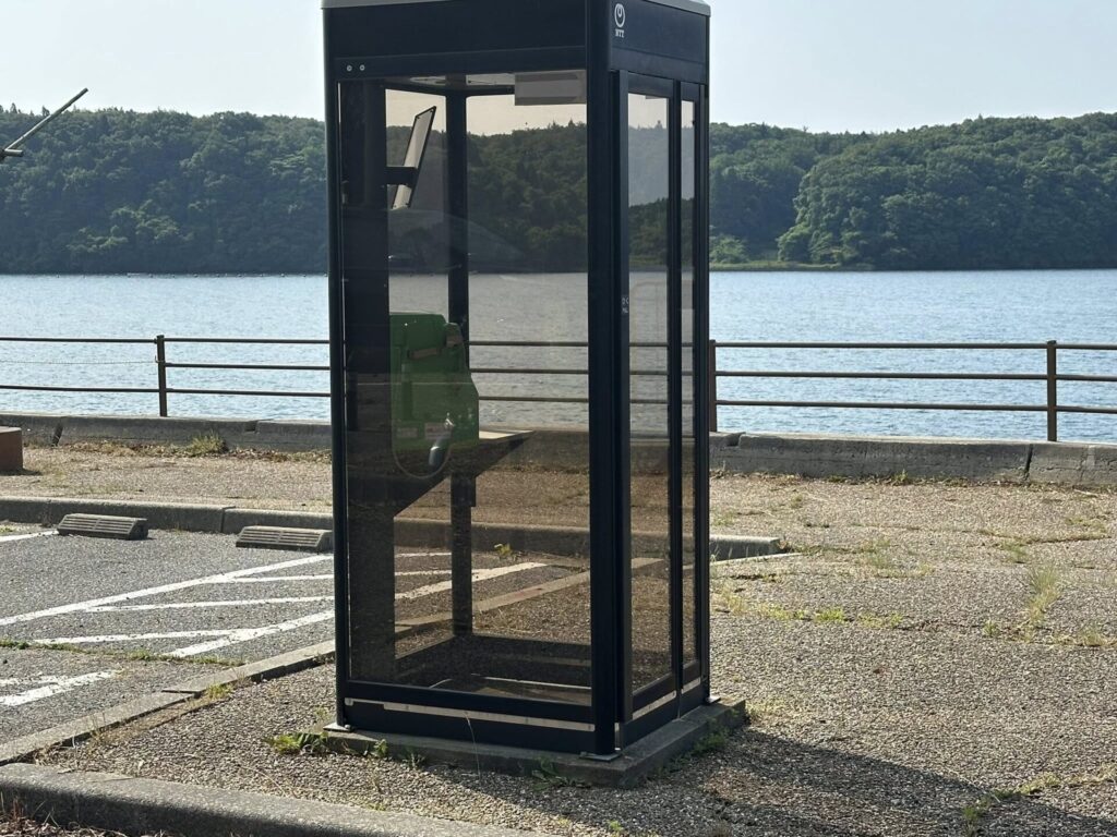 便利なのは、公園内に公衆電話ボックスが残っていること。携帯電話がつながりにくい時には、とても心強い存在です。