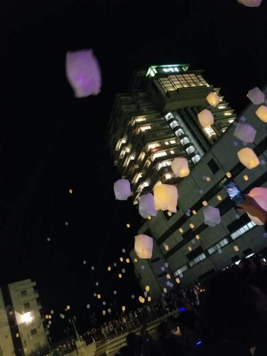 安全を考慮したランタンは、LEDライトでひも付きのものでして、本当に夜空を飛んでいくものではありませんでしたが、大勢の地元民、和倉温泉の観光宿泊客がにぎわう中で十分に幻想的なものでした。