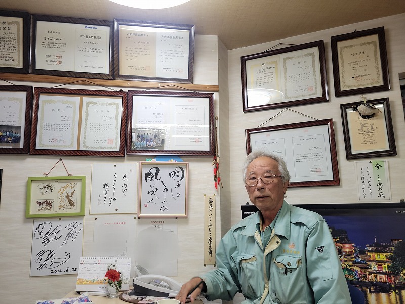 七尾市中島町にご在住の橋口淳之介様は、昭和56年から同社に在籍し、長きにわたり現場を牽引されてきました。