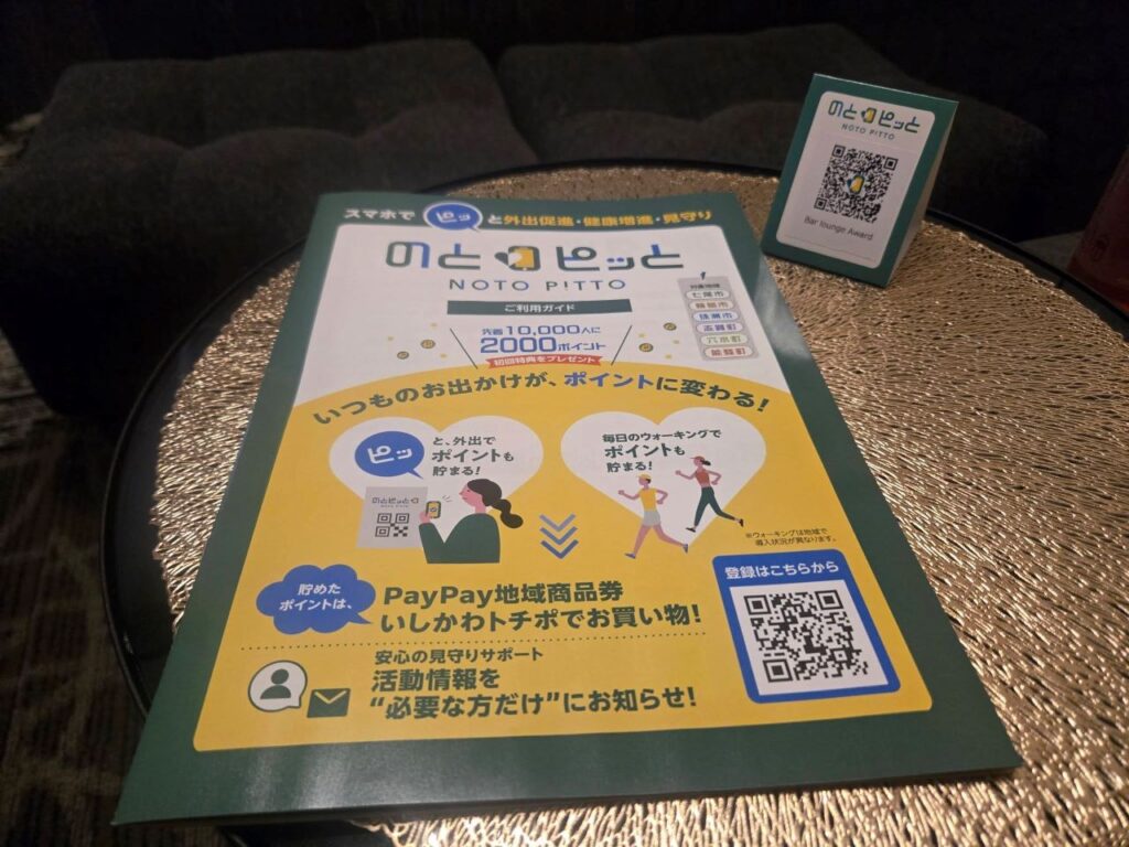 Awardは、能登6市町の対象店舗で利用できる地域限定のデジタルポイント事業のとピッとの加盟店。専用アプリでお買い物やチェックインをするだけでポイントが貯まり、地域の対象店舗での買い物やサービスに利用できる仕組みです。