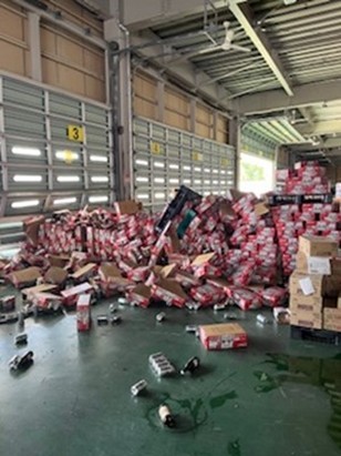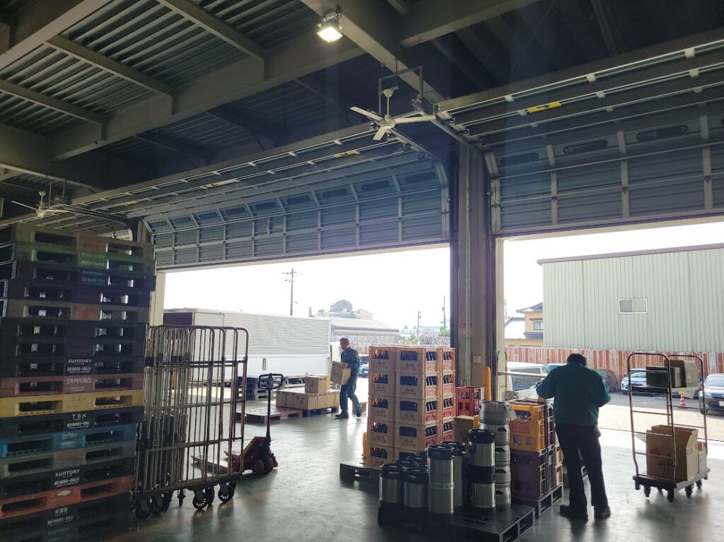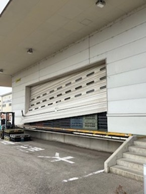 お客様の安否を確認した後、ようやく七尾営業所にたどり着いた吉本様の目に飛び込んできたのは、斜めにずれ、壊れ落ちたシャッターでした。「正直、終わったなという言葉が浮かびました」と、当時の絶望的な心境を物語ります。年末で在庫が豊富にあった倉庫は、倒壊した瓶ビールによって一面ビールの海と化し、缶ビールの箱もシャッターにもたれかかるように倒れていました。上の階の天井は落ち、ガラスが割れて、中に入ることもままならない状況でした。