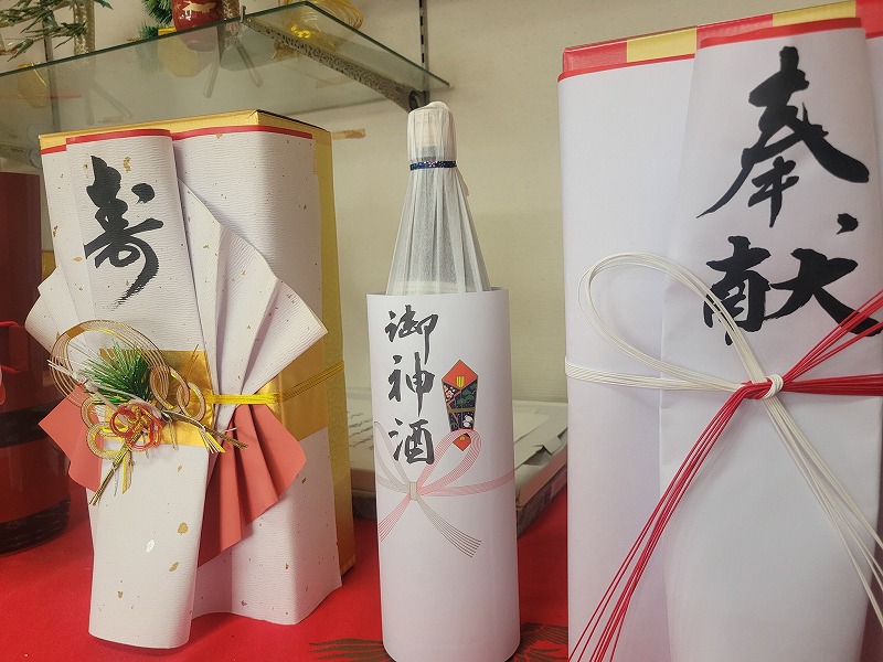 取材中にも、お祭りのお酒の熨斗紙書きや袋の名前書きの依頼が入り、地域に欠かせない存在であることが伺えました。
