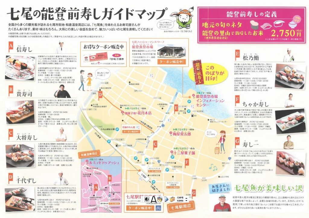 七尾市で能登前寿しを提供されているお店のガイドマップが作成されています。