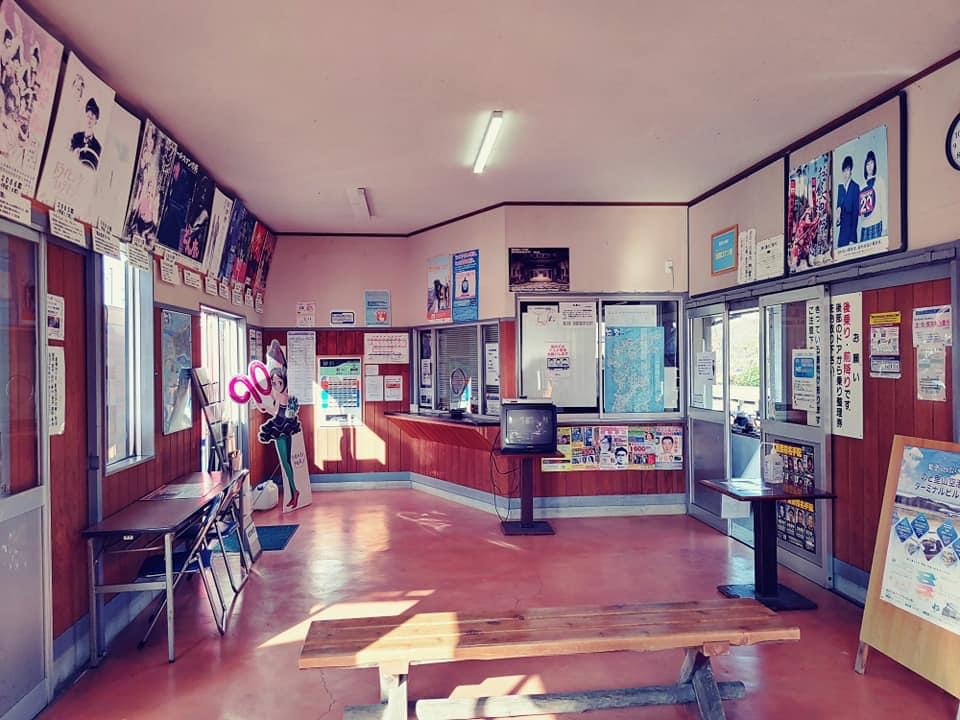 待合室には可愛い中島町のマスコットキャラクター「中島かき子」ちゃんのパネルがありました。