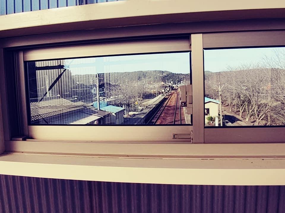 小窓を開けると…さらに遠くまで続く線路を見ることができます。
