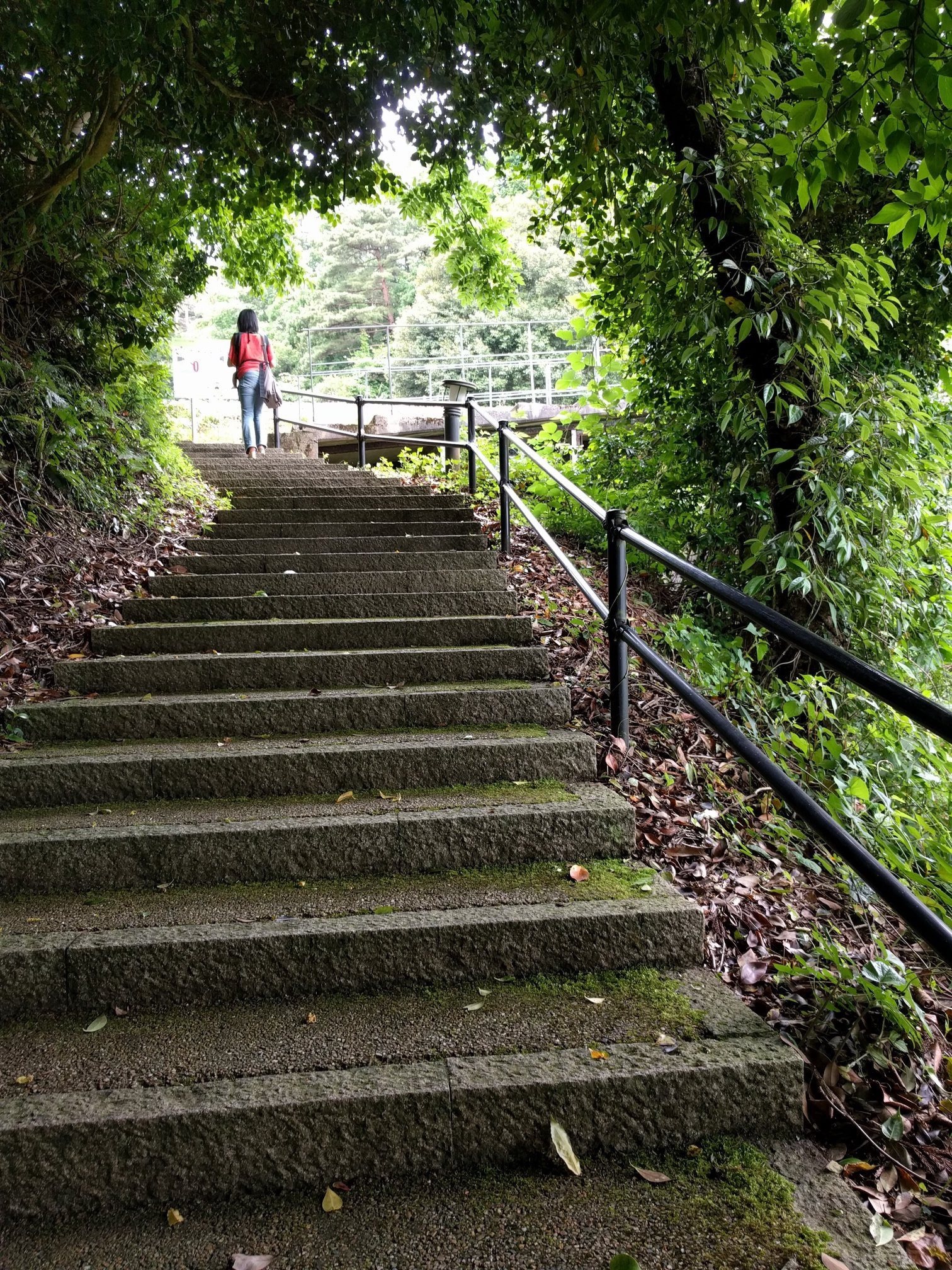 のトロへは、車で近くの駐車場までいきます。そこから階段を上って駅まで向かいます。