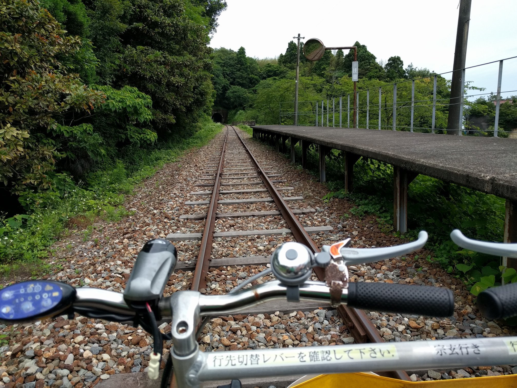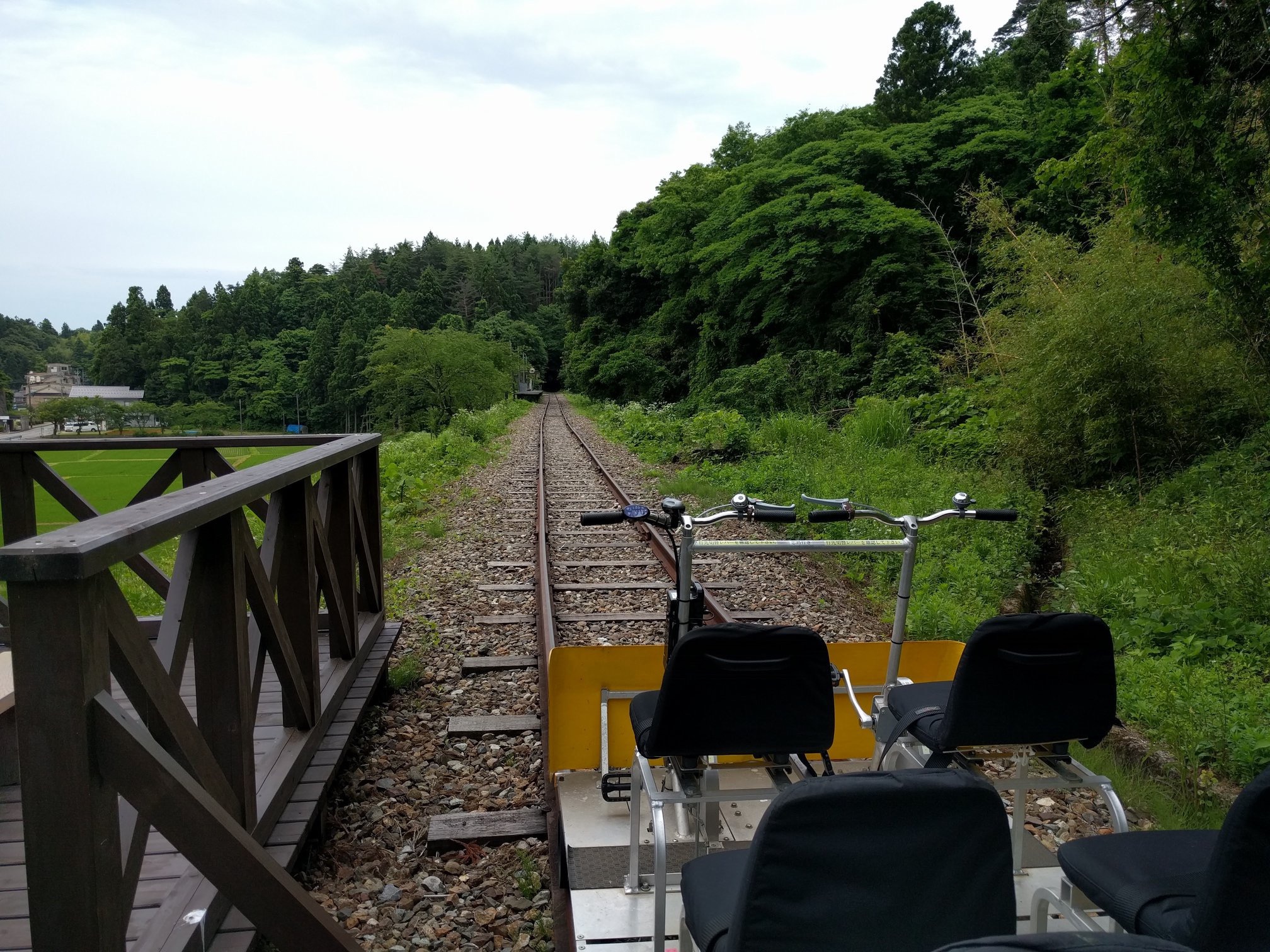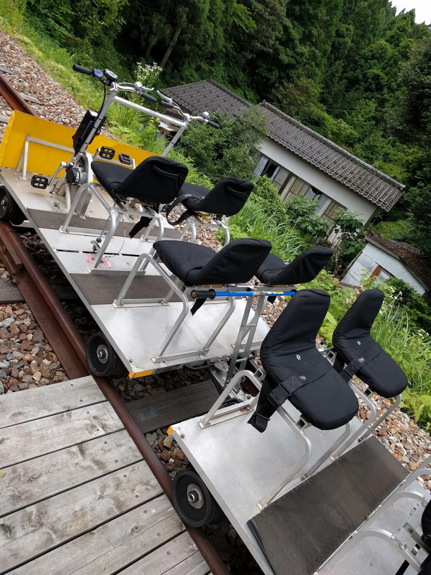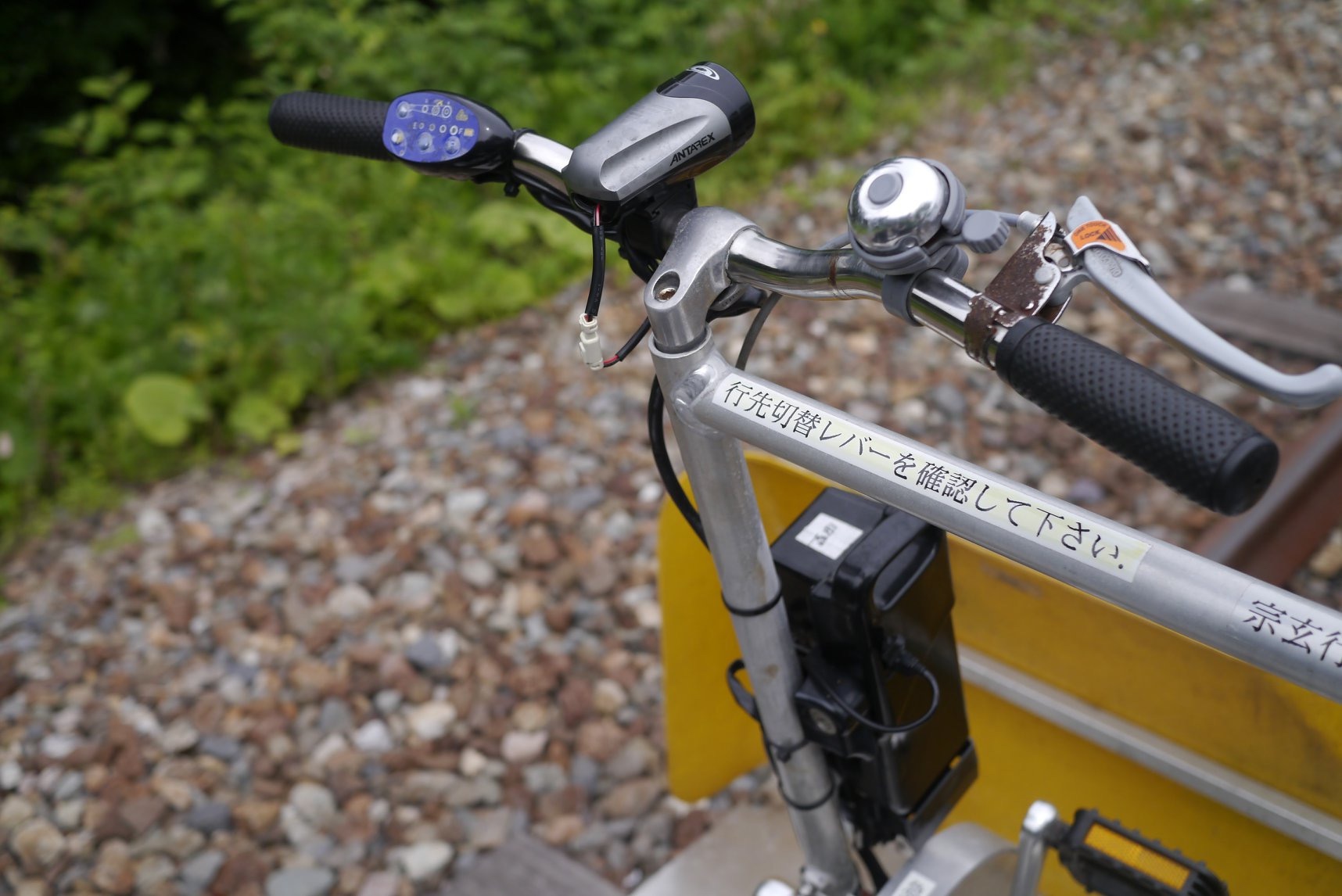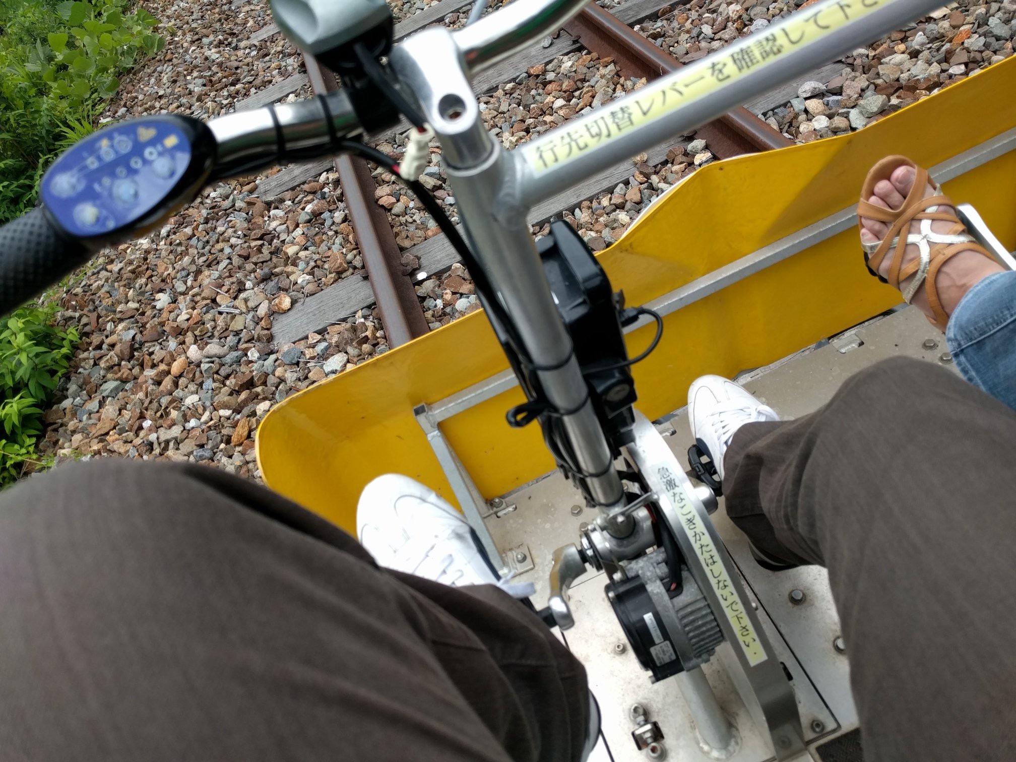 なんと線路を走る自転車なんですね!!これは雨天時に運行できない理由がわかりました。