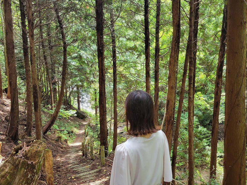 滝の音としぶきでとっても涼しくて、マイナスイオンをたっぷり浴びることができます。