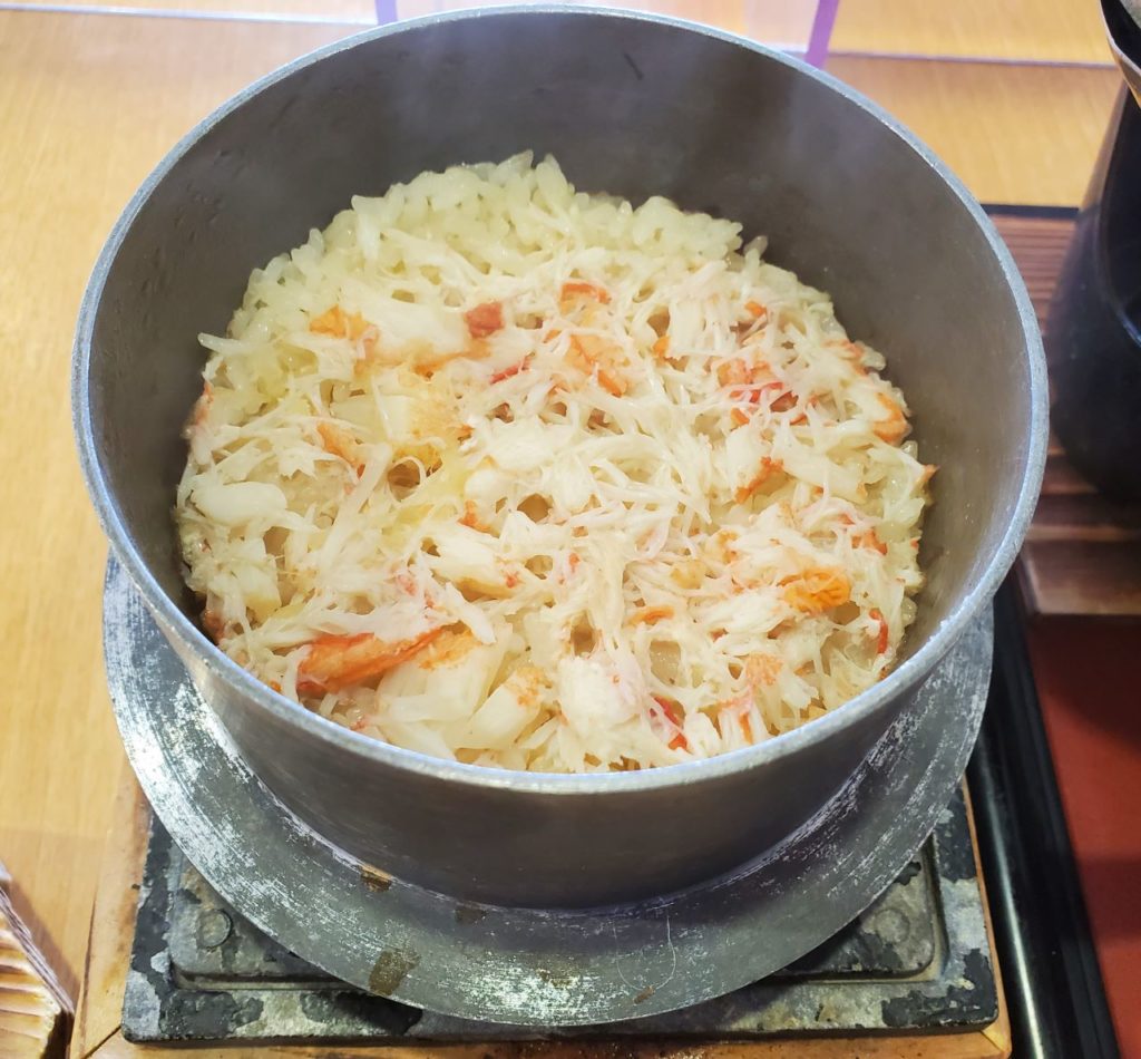 今回の釜飯はカニです。先のメニューでも紹介しましたが、本日のおすすめになっていました。おすすめのメニューが入っているなんて、なんとも贅沢な御膳ですよね。カニはたっぷり入っていて、カニの風味を存分に味わうことができます。御膳についてくるどんなおかずにも合う味付けです。