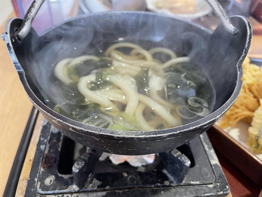 うどんは、鍋に入っているので最後まで熱々で食べることができます。見てくださいこの湯気!美味しそうですよね。