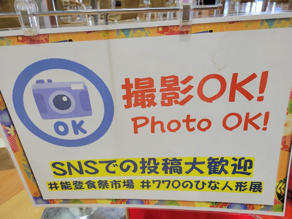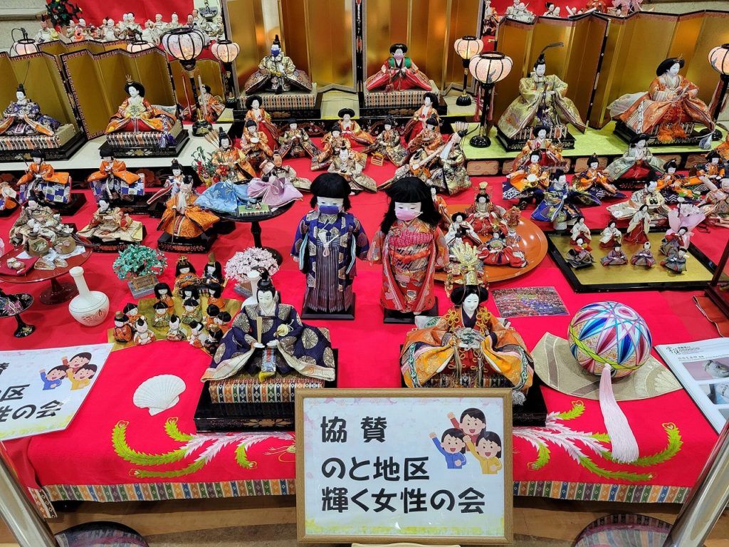 七尾市・能登食祭市場にて、2022年の今年もやってます、ひな人形飾り!
