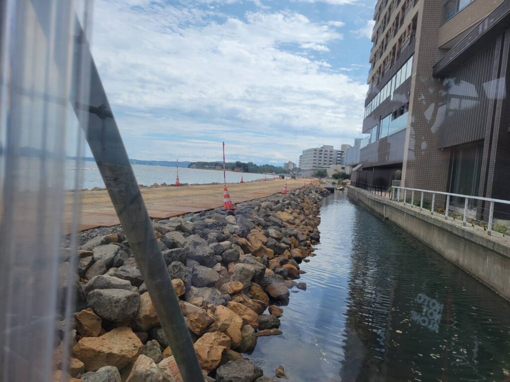 私達の目には見えないところで大規模な復旧が進められているというお話も伺いました。和倉温泉の復旧には、護岸の整備が重要ですが、陸から見ると静かに見えますが、莫大な費用をかけて海側から護岸工事を進めているそうです。
