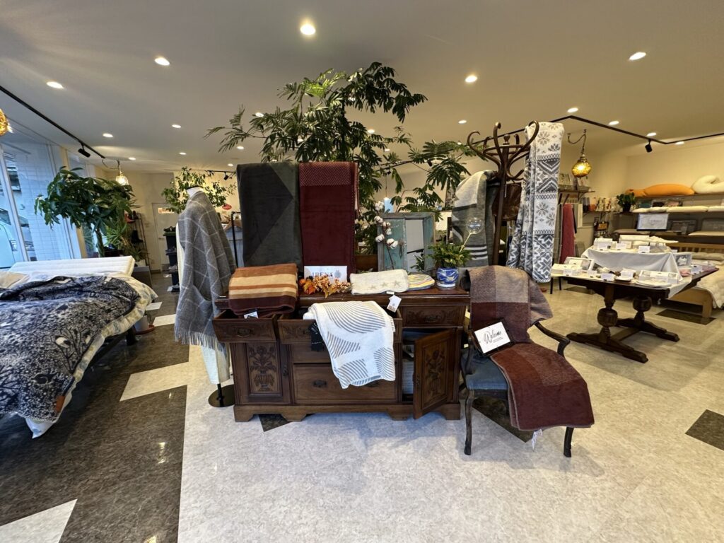 おしゃれな店内には、布団や枕はもちろん、贈り物に良さそうなセンスの良い小物類がたくさんあります。