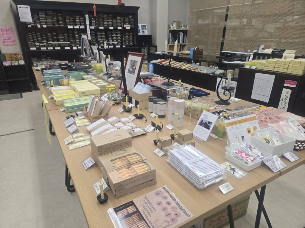昔は多くあったろうそく店ですが、電灯が普及していくことによって、どんどん和ろうそくをあかりとして使う文化は衰退し、お店も少なくなりました。