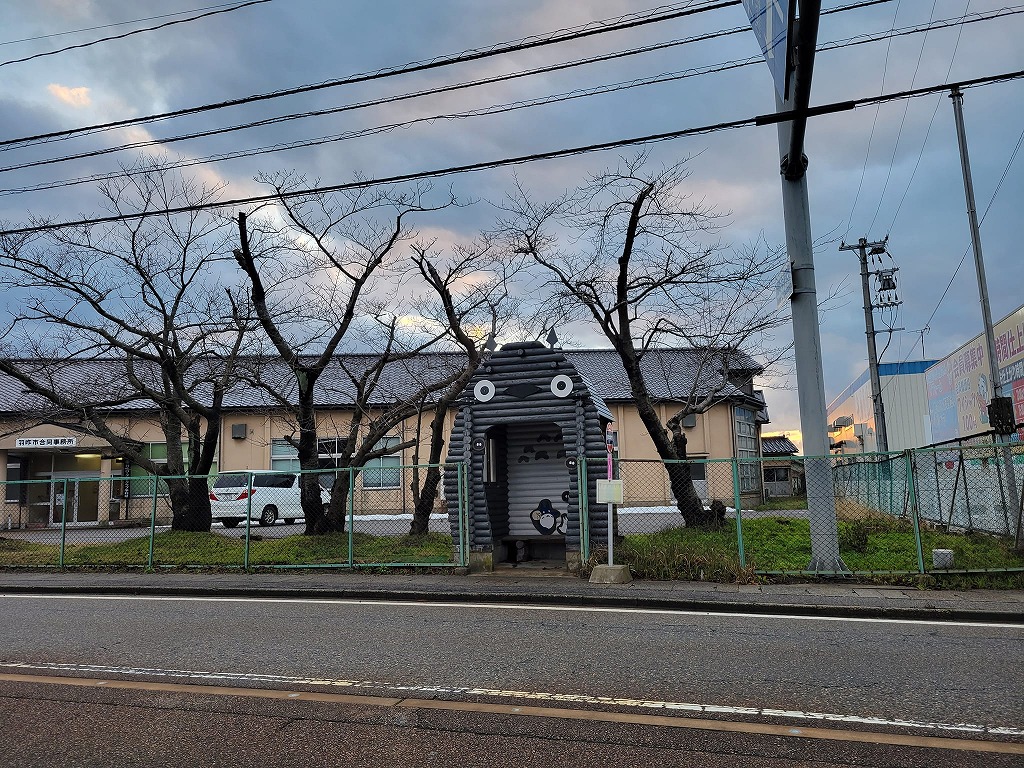 石川県、特に能登ではマイカーがないと不便な地域が多く、公共交通機関といえば、鉄道は七尾線の1路線だけで、あとは路線バスになります。都会から来られると、本数の少なさにビックリされるようなバス停もあります。地元のお子さんや、年配の方の利用が多いバスですが、バス停も待合室があったりなかったり。そんなバス停の一つに、トトロのバス停と呼ばれるところがあるんです。でも、他のトトロのバス停とはちょっと趣向が違って、バス停にトトロがいるのではなく、なんとバス停の待合室自体がトトロなんです!
