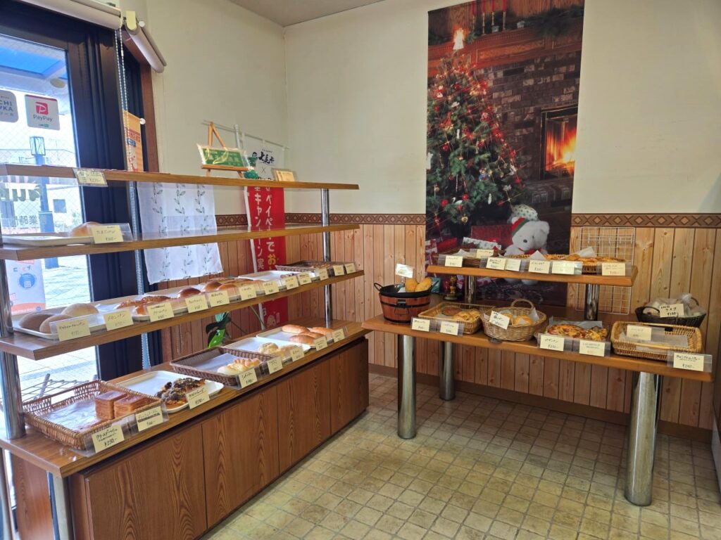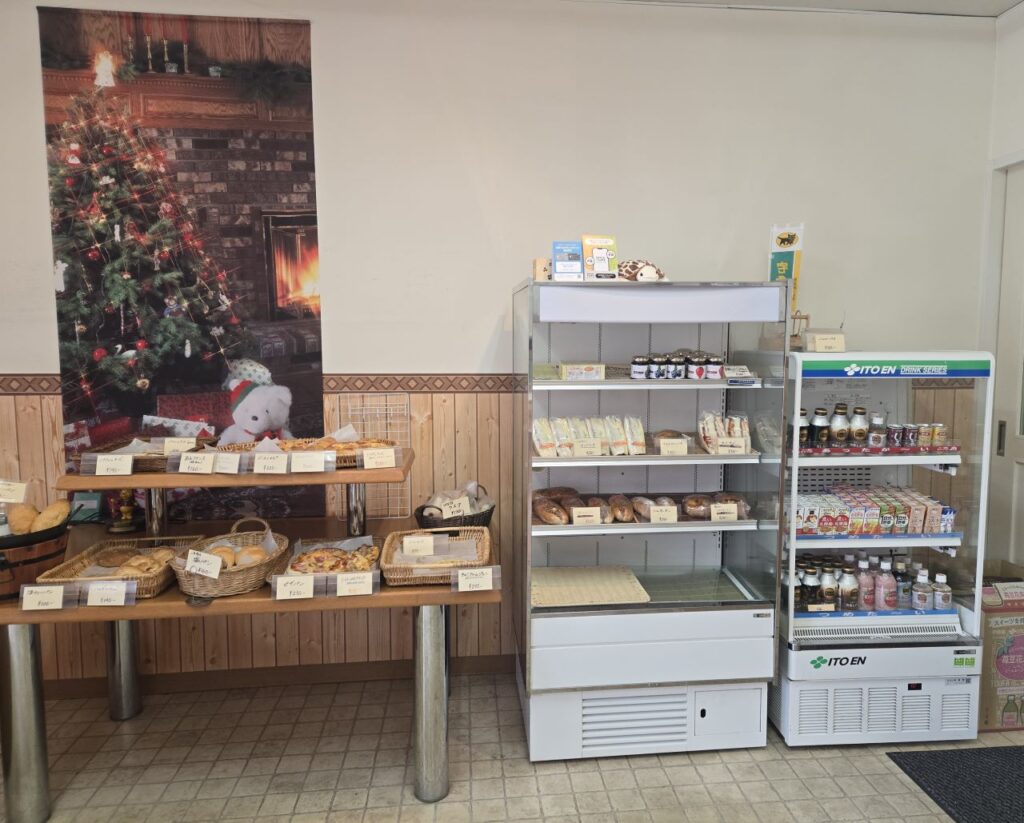 総湯近くには飲食店がありますが、総湯のすぐ隣に焼き立てのパンが並ぶパン屋さんがあるんですよ。