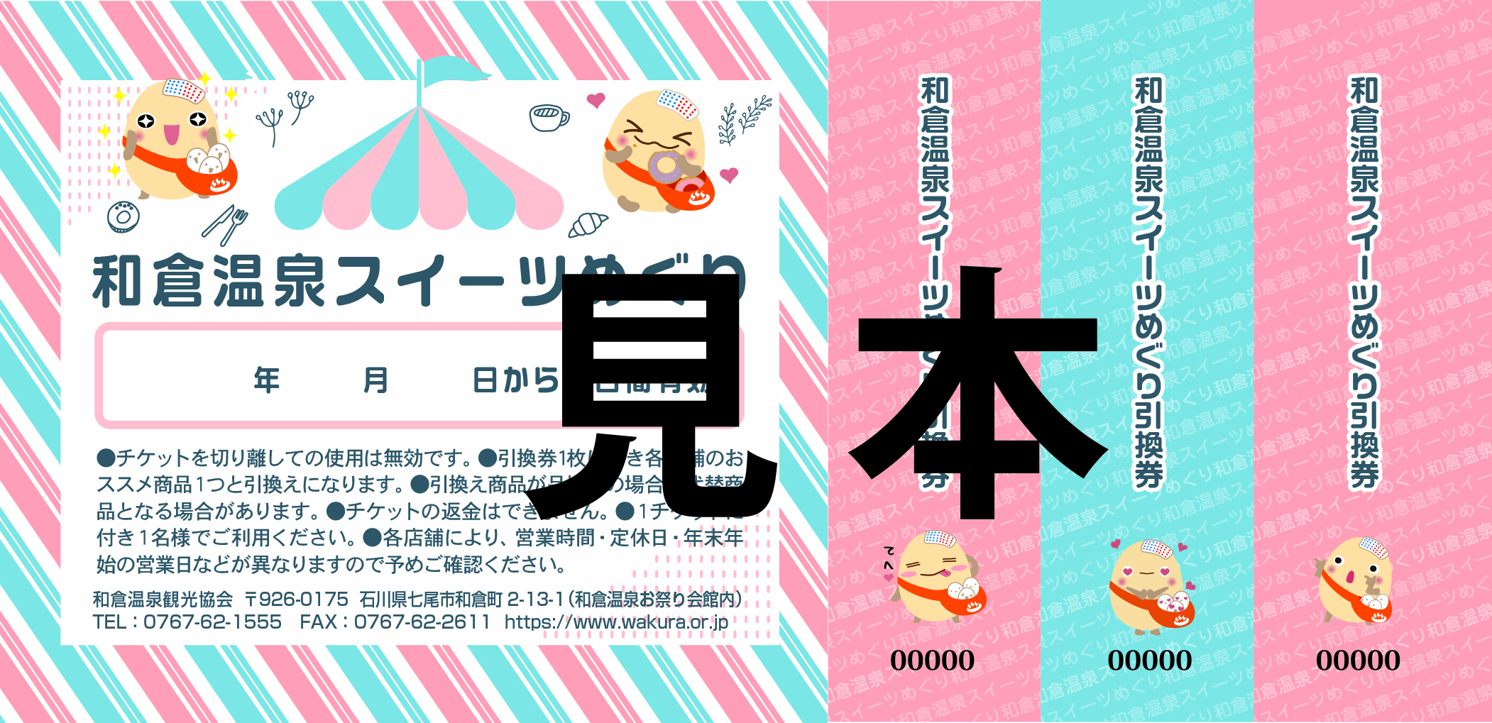 お得なスイーツチケットで和倉温泉街にあるいろいろなお店のスイーツを3つ選んで巡れます!