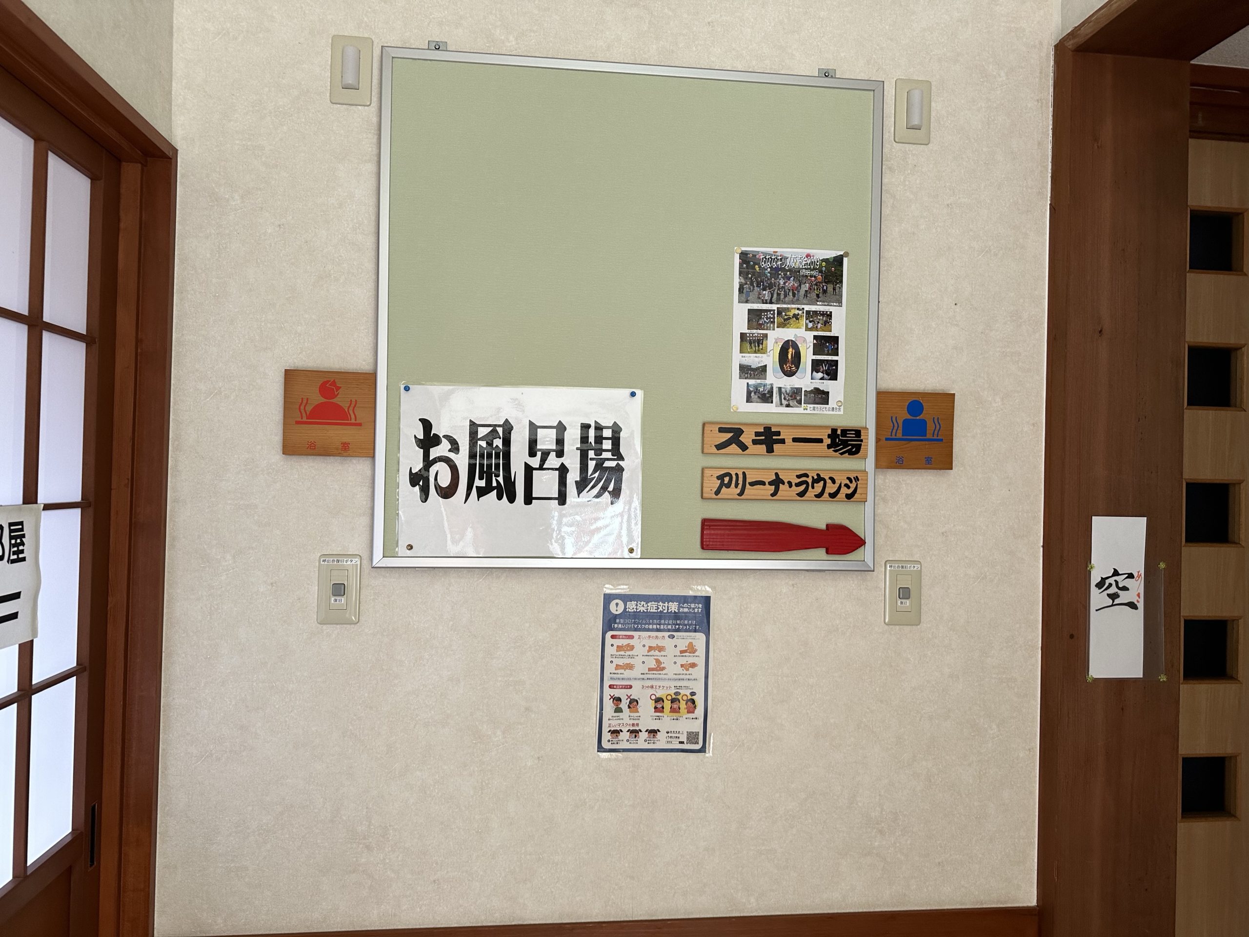 お風呂場の横からスキー場へとつづく渡り廊下です。屋内からもスキー場へと行ヶます。