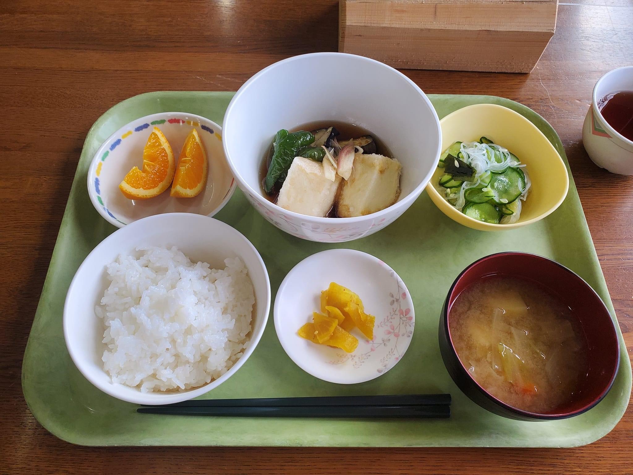 夕飯は揚げ出し豆腐がメイン。野菜たっぷりの具だくさんのお味噌汁もとてもおいしかったです。