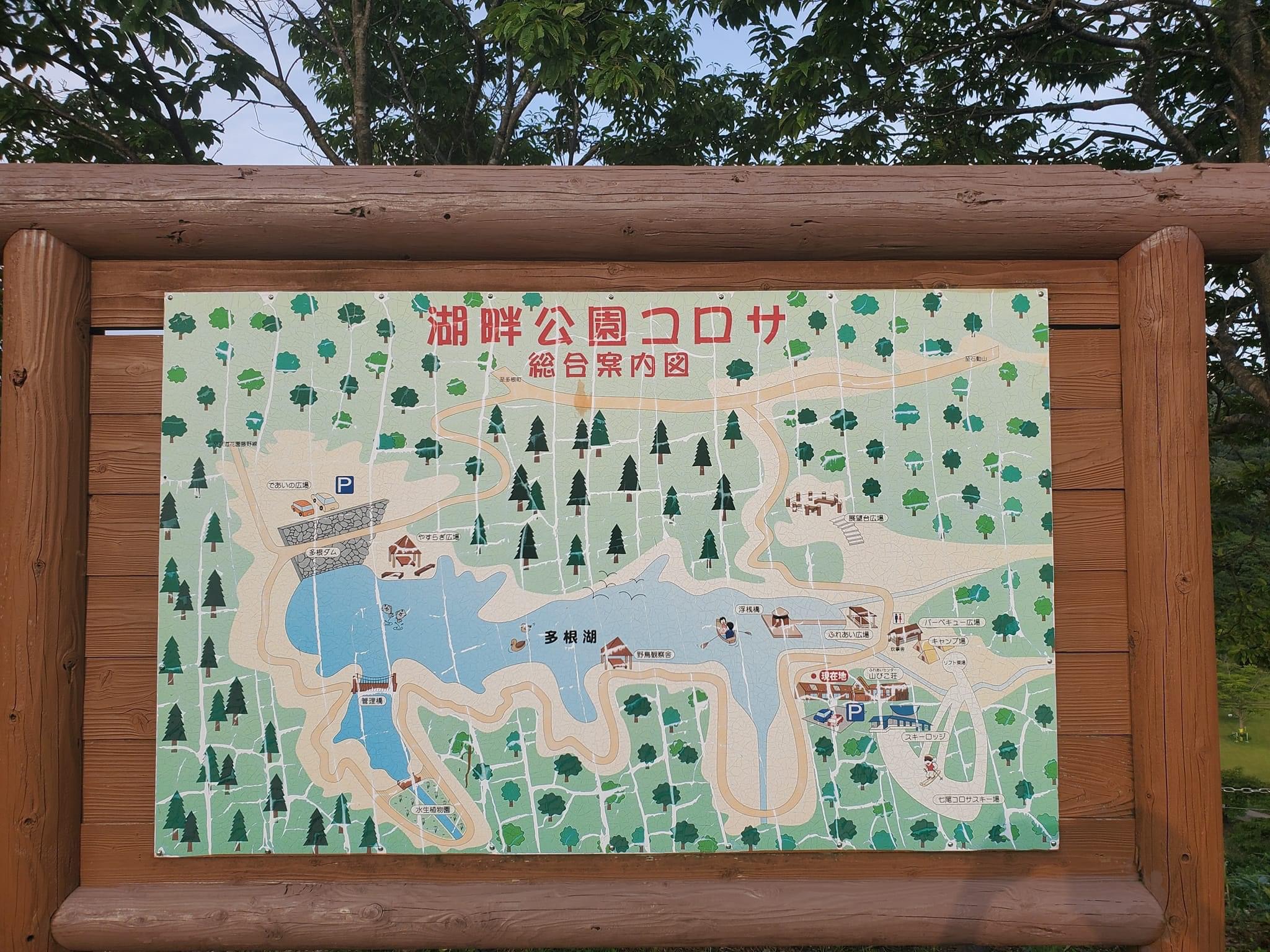 山びこ荘やコロサスキー上は多根湖畔の「湖畔公園コロサ」の中にあります。