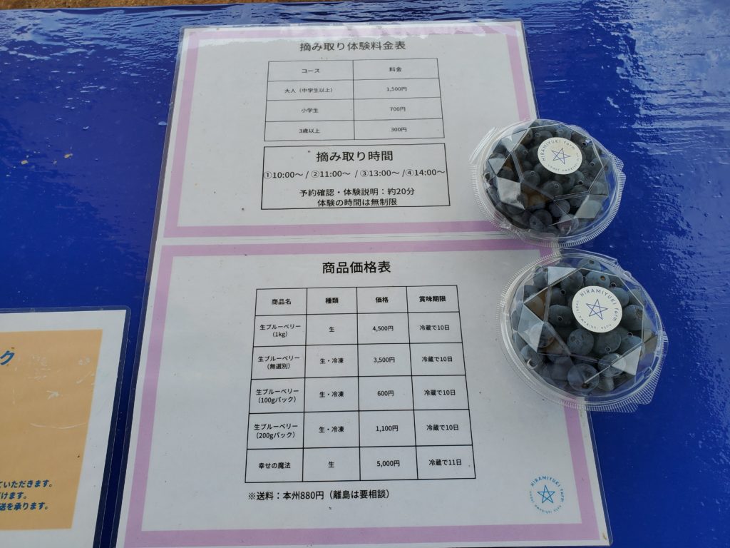大人1人1,500円(2022年現在)で、時間制限なしの食べ放題で、ブルーベリー1パックがお土産として持って帰ることができます。