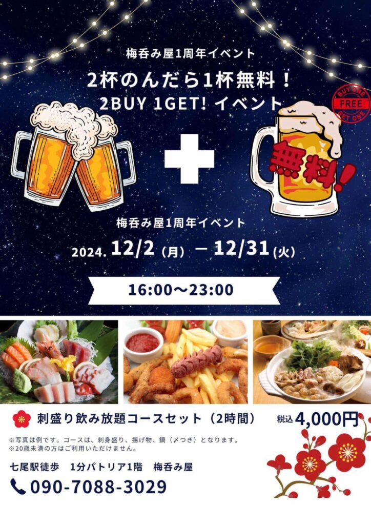 七尾駅前のパトリア1階で開催中の能登屋台村が、「1周年ありがとう」年末大感謝祭を開催します!